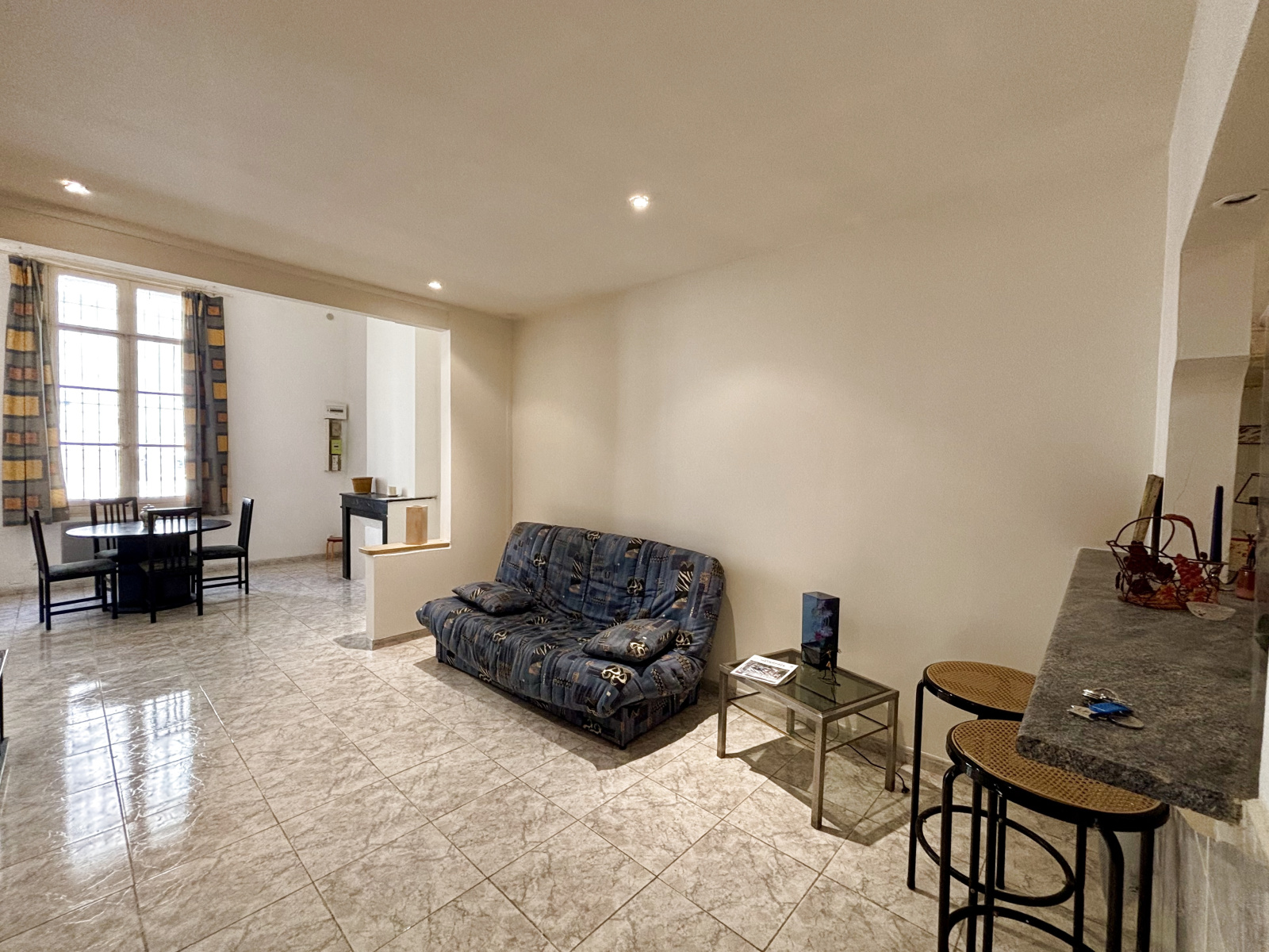 L’appartement a été remis au goût du jour : il ne reste plus qu’à installer la cuisine selon vos envies. Les menuiseries, encore en simple vitrage, peuvent être remplacées pour renforcer le confort thermique.